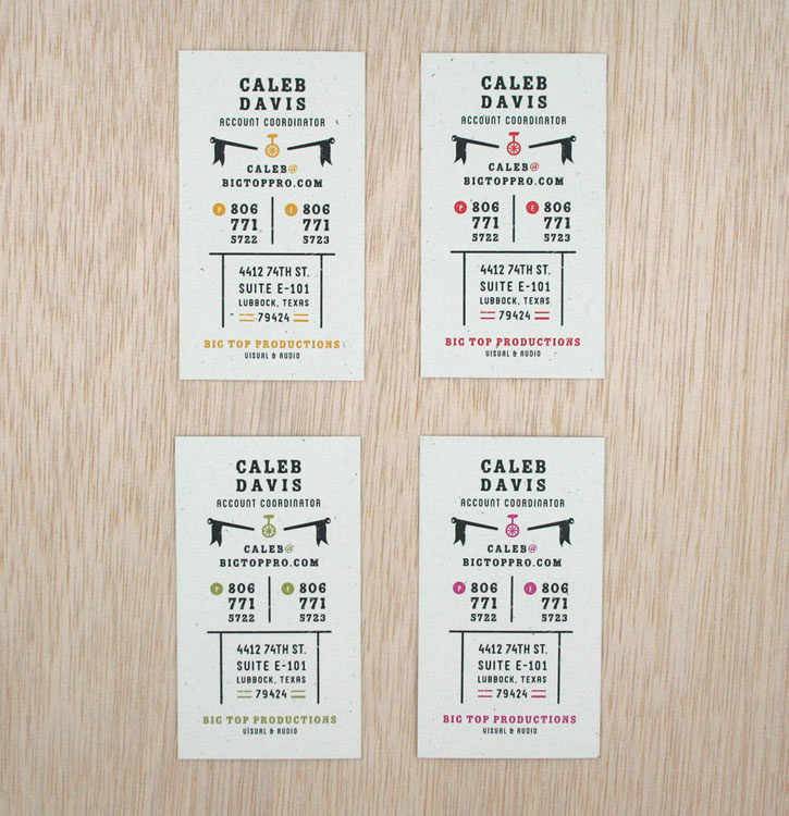 Front of business cards with four color variations